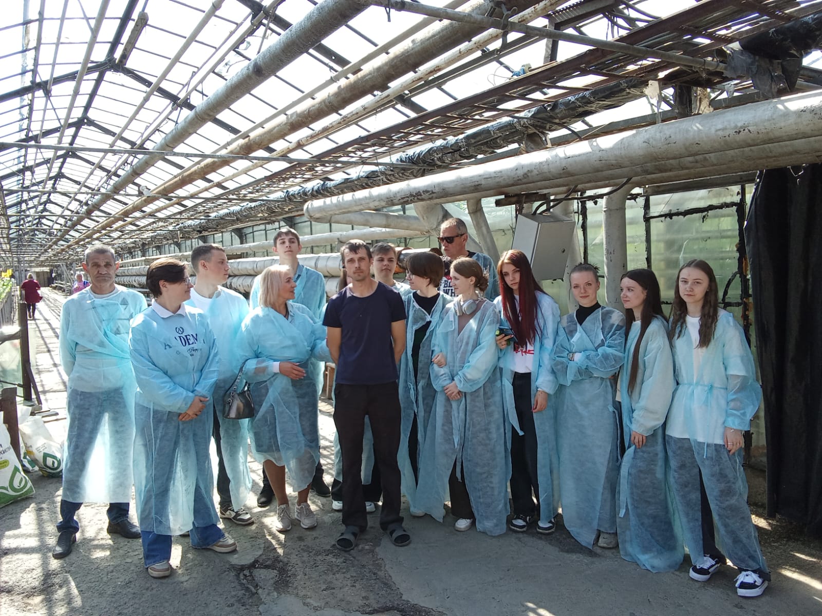 Агроном предприятия - Лубнин А.Ю. ознакомил ребят с историей и работой предприятия, а затем провел экскурсию по теплицам. Сначала посмотрели как растут огурцы и даже попробовали насколько они вкусны с «грядки». Учащиеся наглядно увидели труд овощевода, ознакомились с принципом выращивания овощей и зелени в теплицах. Затем перешли в теплицу по выращиванию томатов, сладкого перца и зелени. Агроном рассказал ребятам как производится полив и подкормка растений, какие методы борьбы с вредителями и болезнями используются на предприятии, как часто собирается урожай и в каком количестве.