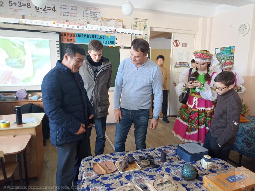 После торжественной части глава округа и директор школы, депут городской Думы Елена Штурмина посетили национальные дома, которые в этот день были развёрнуты в школе и которые являются визитной карточкой этого фестиваля.