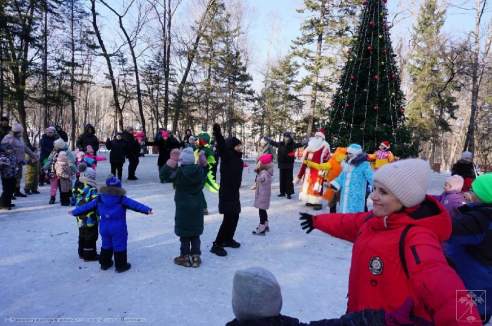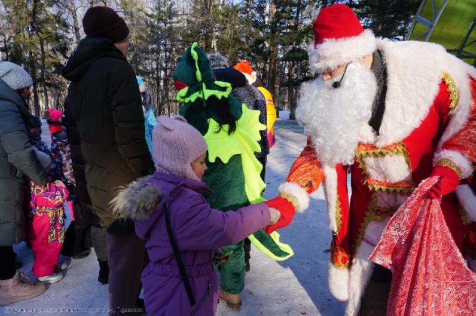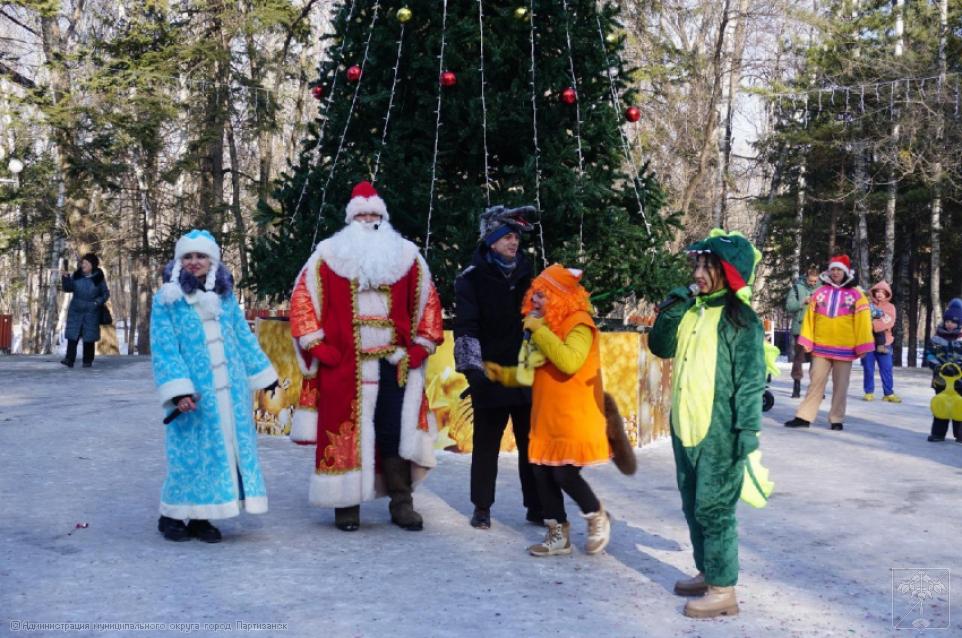 Новогодняя программа «Самый сказочный праздник» состоялась 4 января в городском парке на радость детворе. Сотрудники Городского Дворца культуры в костюмах Деда Мороза, Снегурочки, Волка, Лисички и символа года – Дракона, веселили ребятишек и их родителей у городской ёлки.
