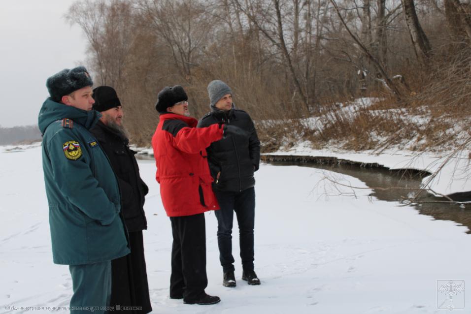 Вчера вопросы организации крещенских мероприятий обсудили на совещании с участием заместителей главы Сергея Юдина и Михаила Романова. Сегодня специальная комиссия, организованная администрацией города, обследовала место проведения службы на реке Партизанская, вести которую будет клирик Храма Рождества Божией Матери Отец Сергий. Здесь же были обсуждены организационные вопросы, касающиеся углубления русла реки, установки палатки с обогревом и оборудования самой купели.