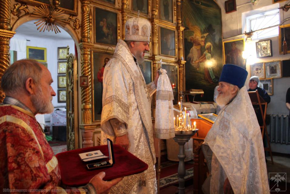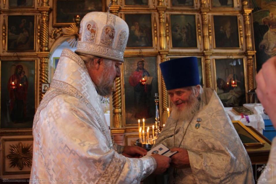 В ознаменование столь значимой даты владыка наградил Отца Василия медалью за заслуги перед Епархией, отметив роль нашего настоятеля в духовном просвещении прихожан. Ведь службе в храме Отец Василий отдал 50 лет своей жизни.