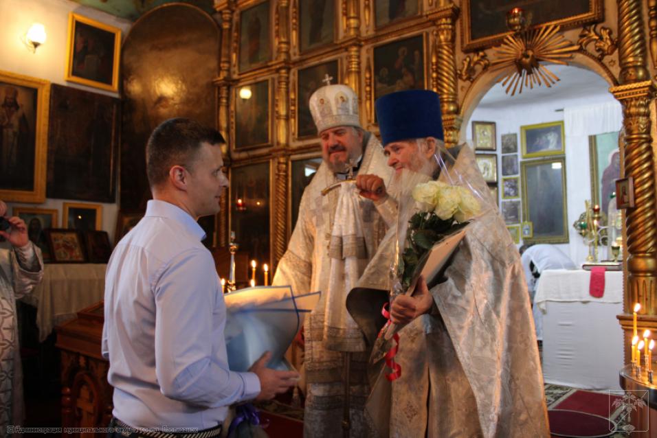 По поручению главы округа с юбилеем батюшку поздравили заместители главы Сергей Юдин и Михаил Романов. Они вручили цветы, приветственный адрес от главы города и подарок. Также были вручены в этот день Отцу Василию цветы и приветствие от депутатов городской Думы.